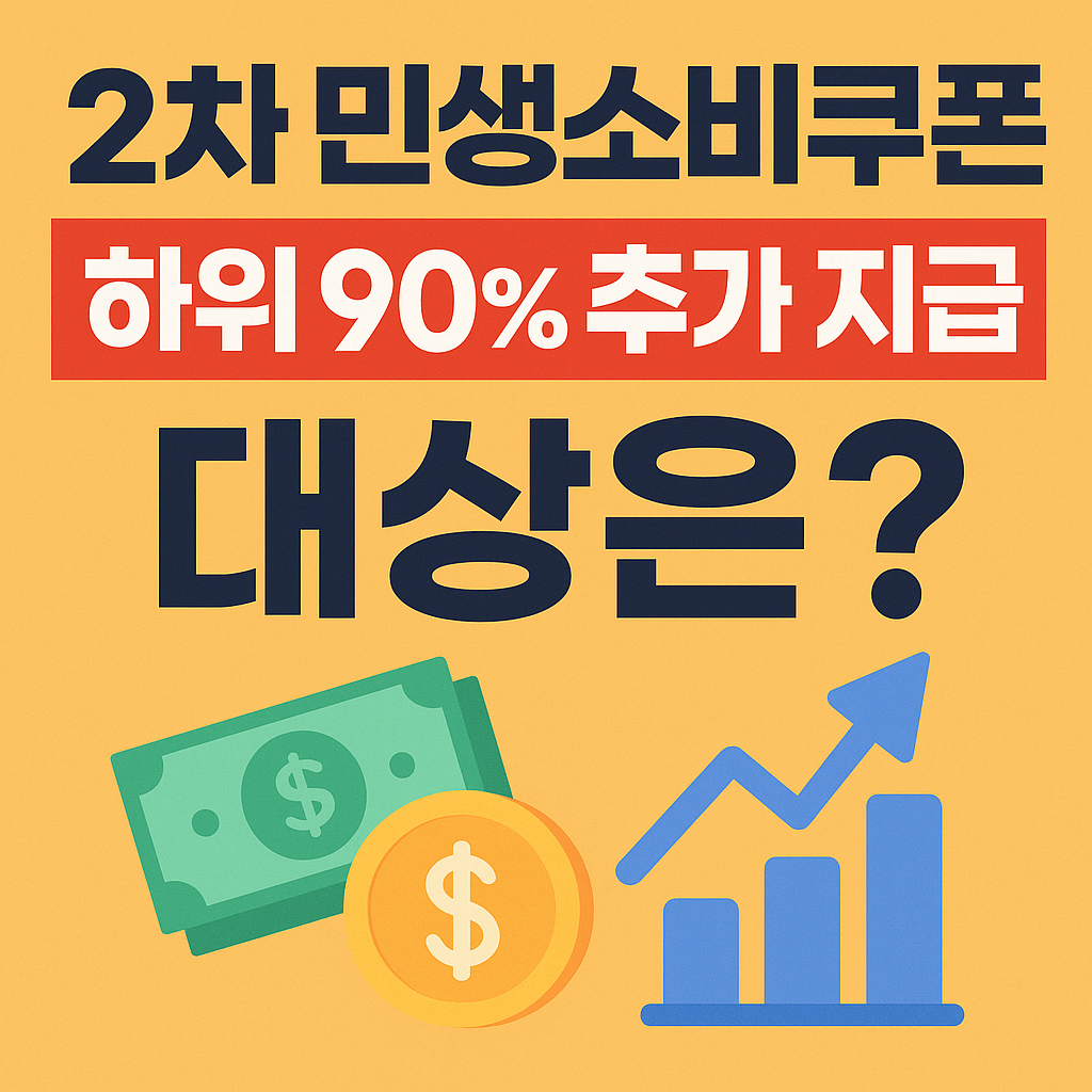 - 2차 소비쿠폰: **소득 하위 90%**에 한해 일괄 10만 원 추가 지급